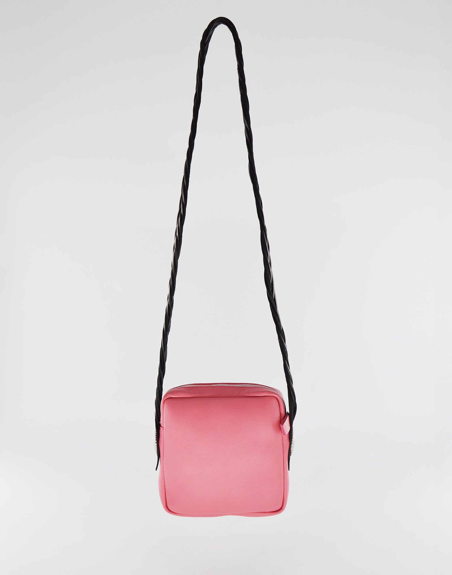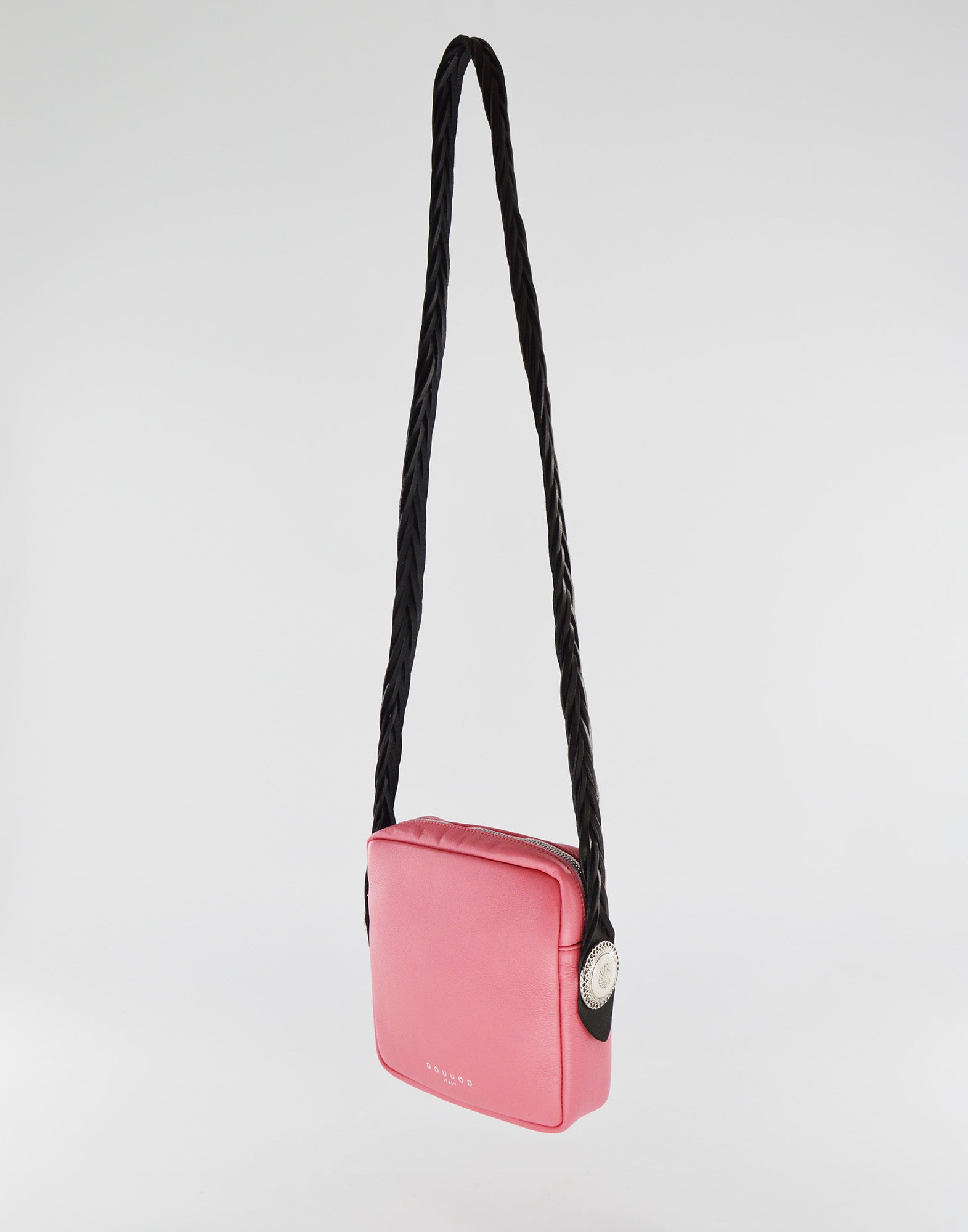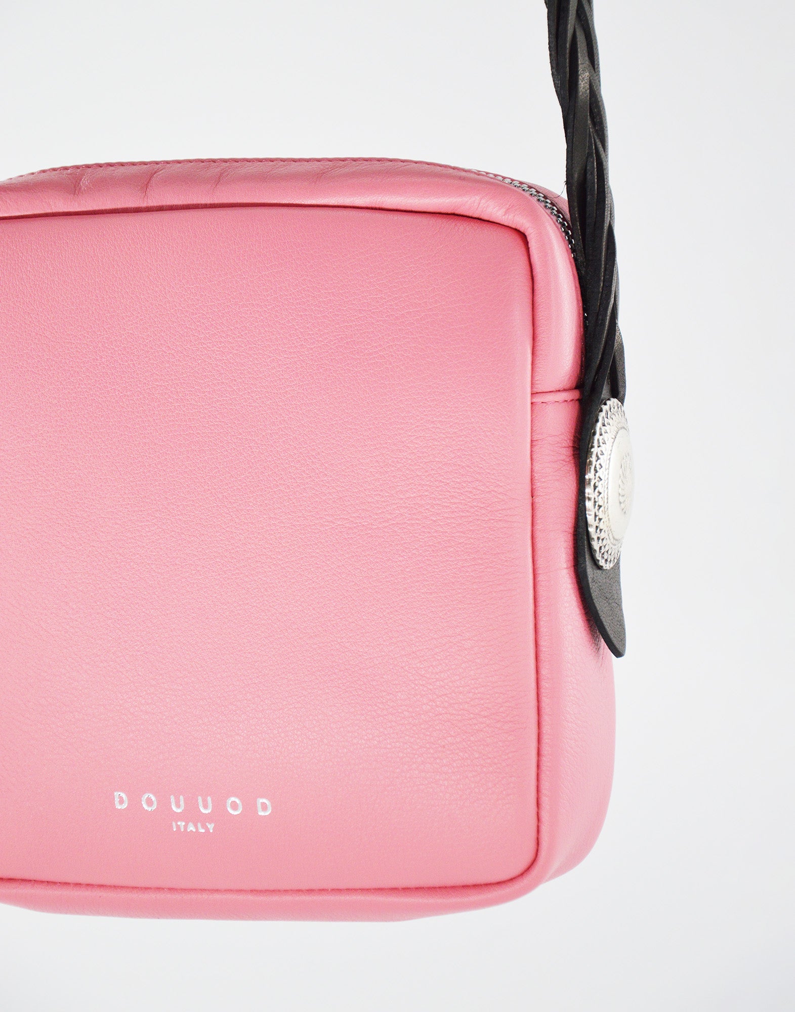 Borsa a mattoncino Colore Peonia Tracolla lunga intrecciata in cuoio Borchie laterali color argento effetto vintage Sfoderato...